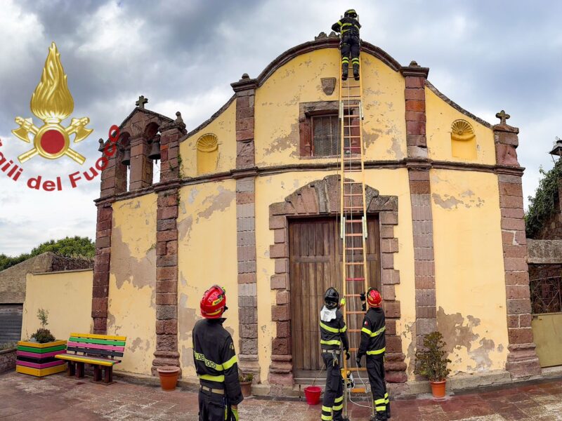Busachi. Rimozione sicura di una croce pericolante sulla Chiesa di San Bernardino