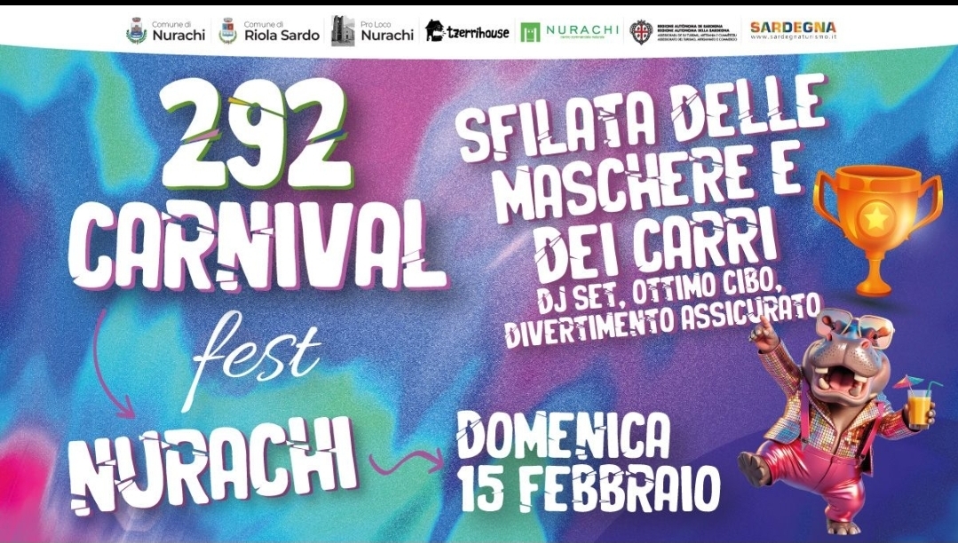 Domenica 15 febbraio Nurachi ospiterà il momento centrale del 292 Carnival Fest, con la tradizionale e attesa sfilata dei carri allegorici e delle maschere, vero cuore pulsante del Carnevale.
