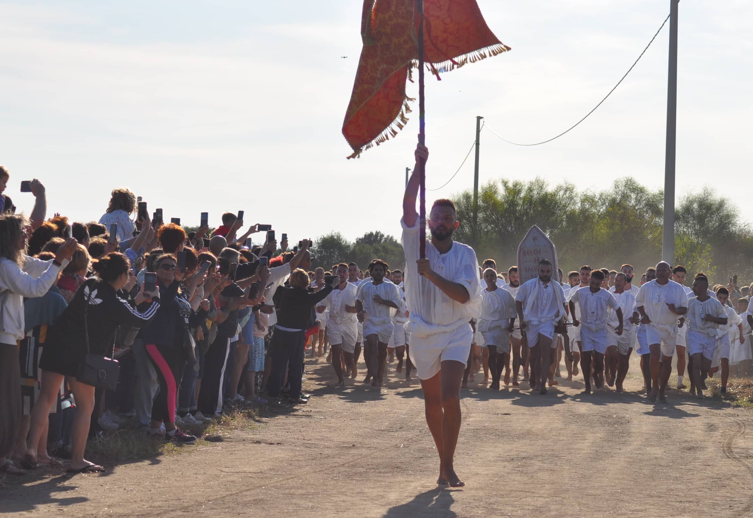 Sabato 31 agosto le polverose strade del Sinis saranno nuovamente il palcoscenico di una delle più grandi e suggestive processioni religiose al mondo. Un lungo fiume di devoti, scalzi e con indosso il tradizionale saio bianco de is curridoris, percorrerà a passo di corsa i più di sette chilometri che separano la cittadina di Cabras dal santuario campestre di San Salvatore. Saranno loro a trasportare l’effige lignea come si fa ormai da più di 500 anni.La Corsa degli Scalzi, organizzata dal Comune di Cabras con il supporto dell’Assessorato al Turismo della Regione Sardegna, Sardegna Turismo, il Comitato organizzatore San Salvatore, l’Associazione Is Curridoris, l’Associazione Santu Srabadoeddu e l’Associazione Enti Locali per lo Spettacolo, è forse l’appuntamento più atteso dai visitatori tra quelli in calendario per la Festa di San Salvatore. Lo scorso venerdì 23 agosto, le donne scalze e con i loro abiti tradizionali, hanno trasportato il più piccolo simulacro ligneo di Santu Srabadoeddu da Cabras a San Salvatore, sabato saranno invece gli uomini coloro i quali porteranno a compimento una tradizione che da secoli vede i cabraresi percorrere, avvolti in una nuvola di polvere, le strade sterrate del Sinis. Qui, un rito che ha attraversato generazioni senza mai perdere la sua autenticità, trova la forza di rigenerarsi e mostrarsi al mondo in tutta la sua bellezza.