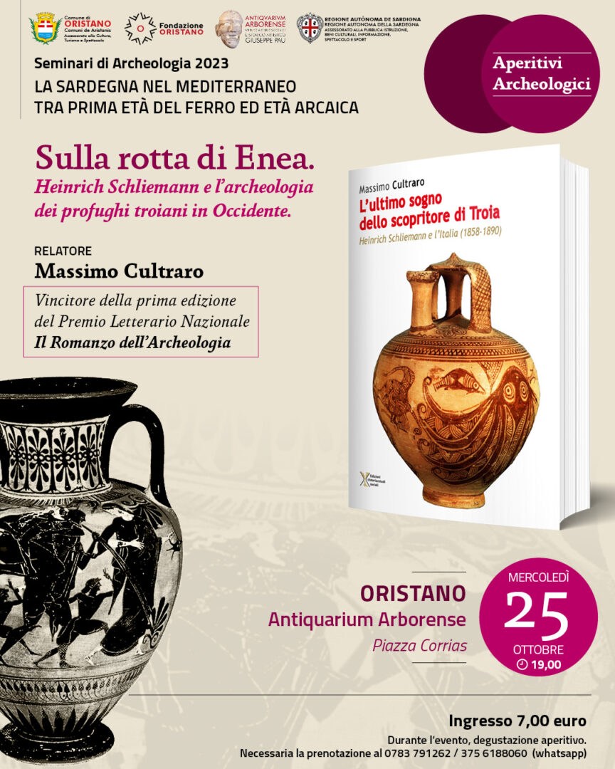 Massimo Cultraro, archeologo, dirigente di ricerca presso il Consiglio Nazionale delle Ricerche e docente di Preistoria e Archeologia Egea all’Università di Palermo, è il vincitore del I Premio Letterario Nazionale “Il Romanzo dell’Archeologia” bandito dalla Fondazione Oristano. Mercoledì 25 ottobre, alle 19, Cultraro sarà premiato all’Antiquarium arborense in occasione dell’appuntamento con gli Aperitivi Archeologi di cui sarà anche relatore con una conferenza dal titolo “Sulla rotta di Enea. Heinrich Schliemann e l’archeologia dei profughi troiani in Occidente”.