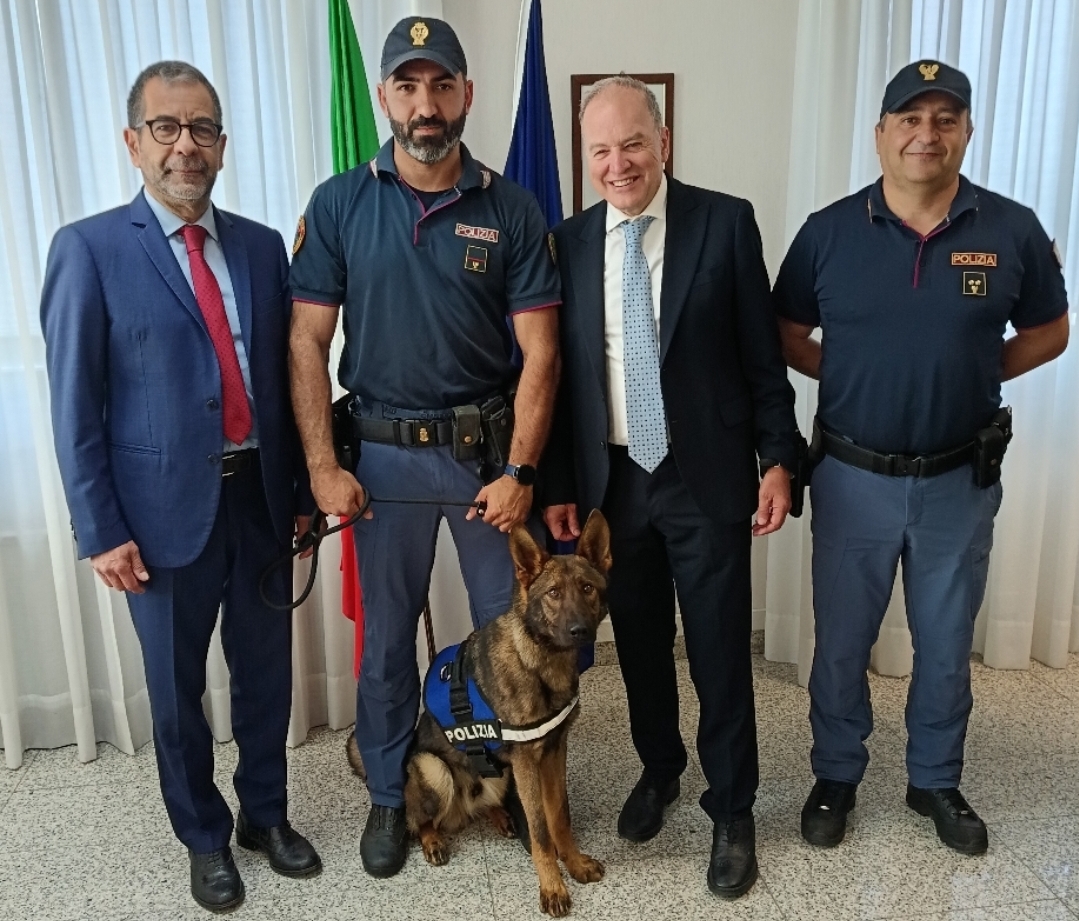Ha solo 15 mesi, ma è già un alleato prezioso delle forze dell’ordine: si chiama PIT, ed è il nuovo cane antidroga in forza alla squadra cinofila della Questura di Oristano. Questa mattina è stato ufficialmente presentato al Prefetto Salvatore Angieri, accompagnato dal Questore Giovanni Marziano, dall’Ispettore Domenico Scanu e dall’Agente scelto Giacomo Diana, suo conduttore.