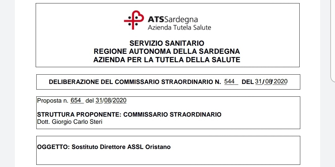 Con un atto firmato dal direttore generale della Ats, Carlo Steri, nella tarda serata di ieri è diventata ufficiale la nomina di Valentina Marras alla guida della Assl di Oristano. Nella delibera dell’Ats, però, si legge che la dottoressa Marras prende l’incarico di “sostituto, in caso di assenza del Direttore pro-tempore”. Gli addetti ai lavori, e sopratutto chi politicamente ha spinto per la sua nomina, voleva da subito l’incarico da Commissario, in attesa di diventare Direttore Generale a tutti gli effetti.