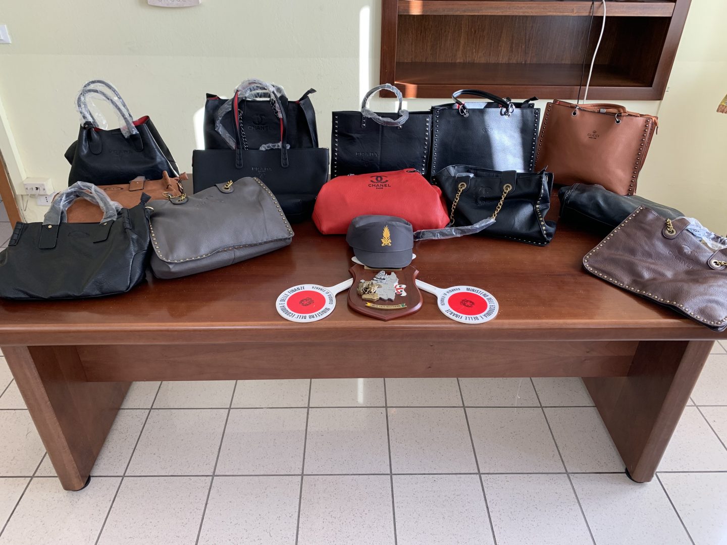 La merce, che riproduce le griffe delle più note case produttrici di borse da donna, veniva offerta da un venditore ambulante di nazionalità senegalese in possesso di regolare permesso di soggiorno, ad un prezzo notevolmente inferiore a quello dei prodotti originali.