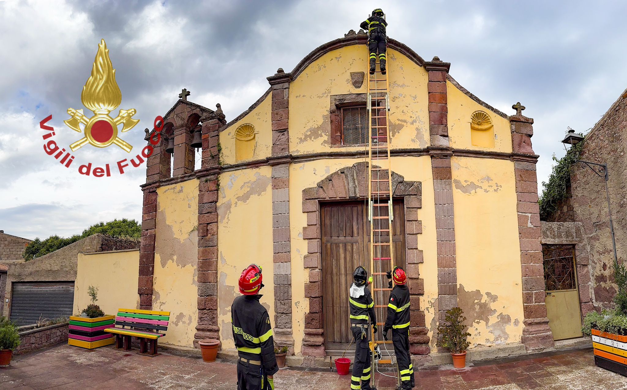 Questa mattina, 14 ottobre, i Vigili del Fuoco del distaccamento di Abbasanta sono intervenuti a Busachi, per rimuovere una croce in ferro ornamentale che minacciava di cadere dalla sommità della facciata dell’antica Chiesa di San Bernardino.