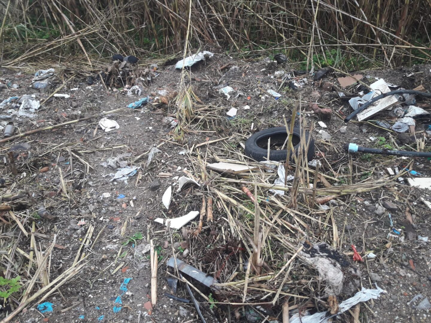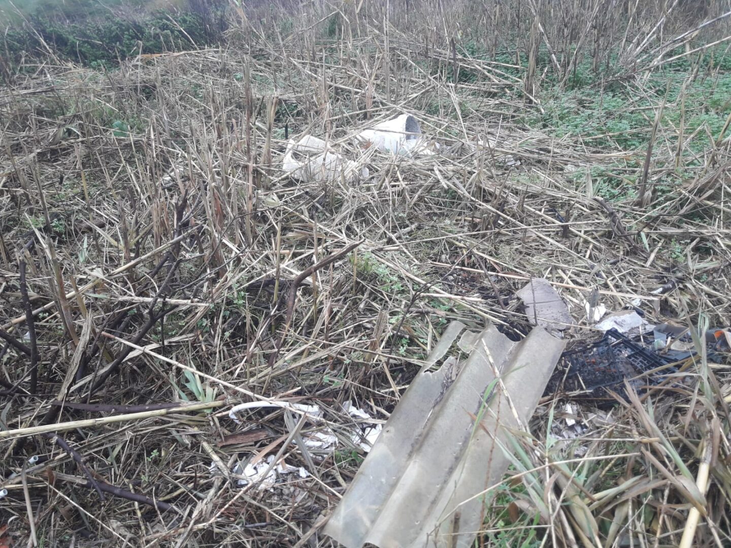 Impossibile non vedere anche l’enorme quantità di rifiuti che è rimasta: plastica, ruote, reti, ferraglia varia, inerti, ma sopratutto amianto.