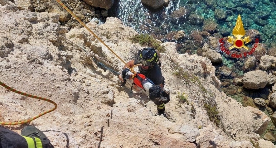 Cagnolino salvato dai vigili del fuoco. Era caduto in una falesia nel Sinis