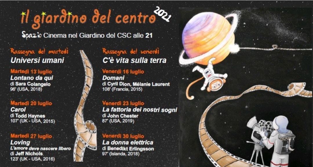 Dal 13 al 30 luglio il Giardino del Centro diventa Spazio Cinema con sei proiezioni. Tre nella rassegna del martedì, Universi umani, e tre nella rassegna del venerdì, C’è vita sulla terra.