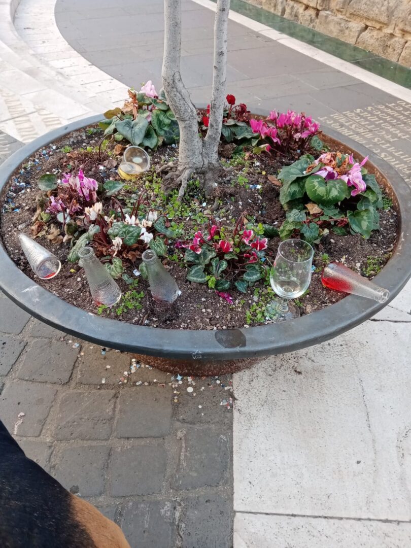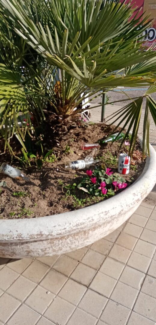Gli addetti di Formula Ambiente sono regolarmente chiamati agli straordinari per ripulire vie e piazze. Poco possono fare per i rifiuti che si trovano sopra vasi e aiuole. E allora ecco l’indecoroso proscenio, che viene ripulito grazie al buon cuore di cittadini e titolari di locali pubblici. Per una volta, lasciatecelo dire: che schifo!