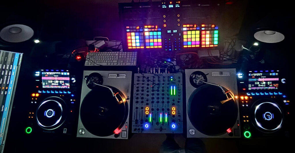 Questo sapiente equilibrio nella disposizione degli elementi sonori fa la differenza quando al mixer c’è un DJ con la capacità di creare quel fil rouge che incanta e trascina il pubblico. Dalla frequentazione dei più importanti ambienti musicali internazionali, DJ Giorgio Casu ha saputo mescolare stili diversi, creando un’alchimia unica. La sua virtù innata nel padroneggiare la tecnologia più all’avanguardia, unita a una fantasia creativa inarrestabile, regala esperienze musicali di altissima tensione. La maestria nel maneggiare gli stems, ossia le versioni separate di una canzone, in cui ogni elemento (come voce, batteria, basso, ecc.) è isolato su tracce audio diverse, gli permette di modificare o mixare ogni parte individualmente e creare armonizzazioni straordinarie che riscrivono in modo nuovo i brani più conosciuti. Per gli addetti ai lavori citiamo gli elementi del set up di DJ Giorgio Casu: il cuore, mixer Allen & Heath Xone 96, i muscoli, quattro F1 è un X1 Native Instruments, due CDJ 3000 Pioneer, la tradizione, due SL1200 MK2 Technics, Testine Ortofon Concorde DJ, Phase DJ controller DVS, la materia grigia, Traktor Pro.