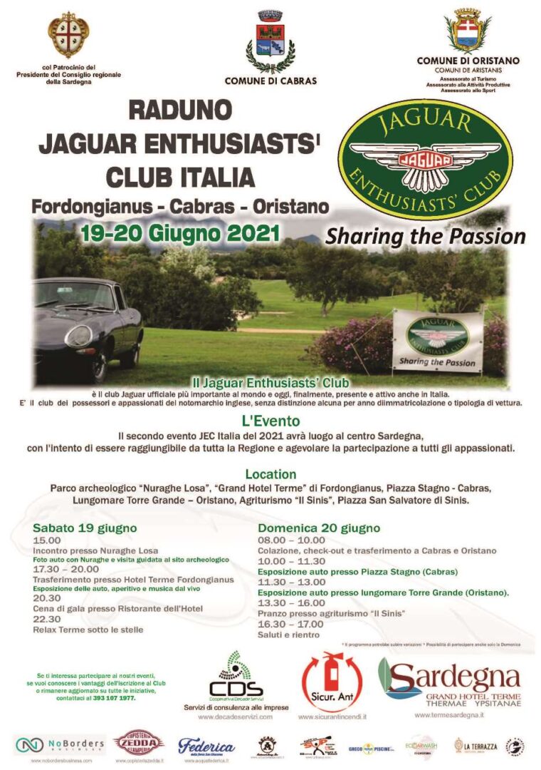 L’iniziativa è del club Jaguar ufficiale più importante al mondo, con il patrocinio degli Assessorati al Turismo, alle Attività Produttive e allo Sport del Comune di Oristano.