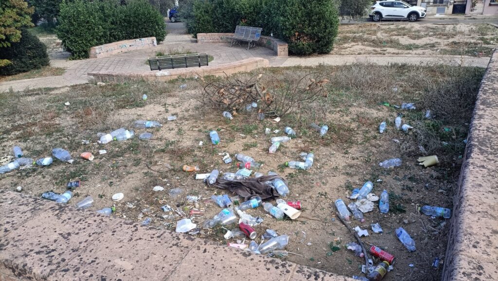 Bottigliette di plastica, resti di bibite e birra, cartacce e altri rifiuti sparsi ovunque. È la scena che da giorni si presenta nella piazza della chiesa di Donigala, cuore del quartiere e luogo di ritrovo per giovani e famiglie. Uno spazio che dovrebbe essere simbolo di comunità e socialità, ma che oggi versa in uno stato di abbandono totale.