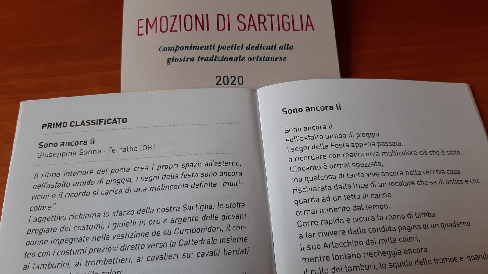 L’opera di Giuseppina Sanna è stata giudicata la migliore tra le 42 che hanno partecipato al concorso bandito dalla Fondazione Oristano in occasione della Sartiglia 2020 e che, dopo essere stato riservato ad altre forme di espressione artistica (pittura e fotografia), quest’anno è stato dedicato alla poesia ed ha visto una altissima partecipazione da tutta Italia: oltre alla Sardegna, Lombardia, Veneto, Campania, Emilia Romagna, Lazio a conferma del grande successo che la manifestazione riscuote anche fuori dai confini regionali.