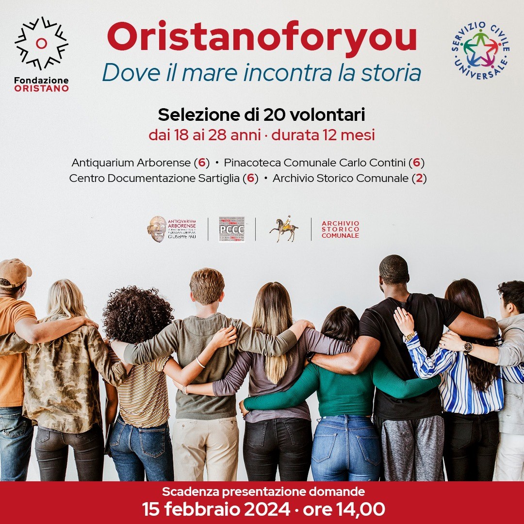 La Fondazione Oristano è tra i soggetti selezionati dal Dipartimento della Gioventù e del Servizio Civile Nazionale della Presidenza del Consiglio dei Ministri per l’attuazione di progetti con volontari di servizio civile nazionale. Il progetto della Fondazione Oristano, dal titolo “Oristanoforyou – Dove il mare incontra la storia”, è rivolto a 20 volontari che saranno impiegati per 12 mesi all’Antiquarium arborense, nell’Archivio storico comunale, nel Centro di documentazione della Sartiglia e nella Pinacoteca comunale Carlo Contini.