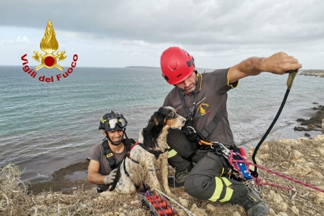 I vigili del fuoco della sede centrale del Comando di Oristano hanno soccorso, in località Su Tingiosu, nel Comune di Cabras, un cane da caccia in difficoltà. L’animale, un setter inglese tricolore, di nome Maya, era scivolato dalla scogliera, alta circa 20 metri.