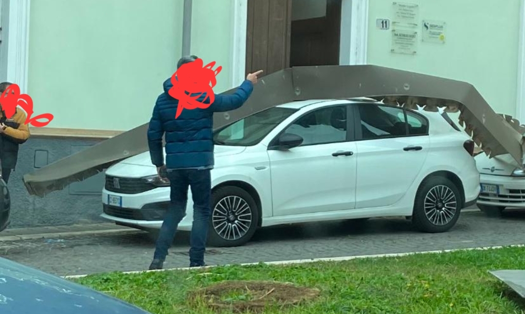Attimi di paura in Piazzetta Tre Palme, in pieno centro storico, dove un grosso pezzo di grondaia è crollato da un palazzo, volando sul tettuccio di un’auto in sosta. In quel momento, diverse persone transitavano nella piazza, ma fortunatamente nessuno è stato ferito.