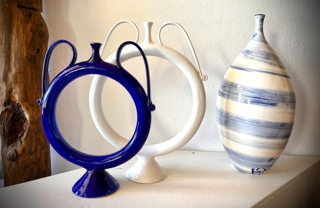 Fondata e guidata dall’artista Pina Corriga, l’azienda ha costruito negli anni uno stile riconoscibile, frutto di una profonda conoscenza delle tecniche ceramiche e di uno studio attento delle forme. Al tornio nascono manufatti dalle linee essenziali e sinuose, plasmati con cura e arricchiti da interventi manuali che ne determinano il carattere: trafori, tagli, piegature, inserti e un accurato lavoro di decorazione con ingobbi, smalti policromi e applicazioni a pennello o aerografo.
