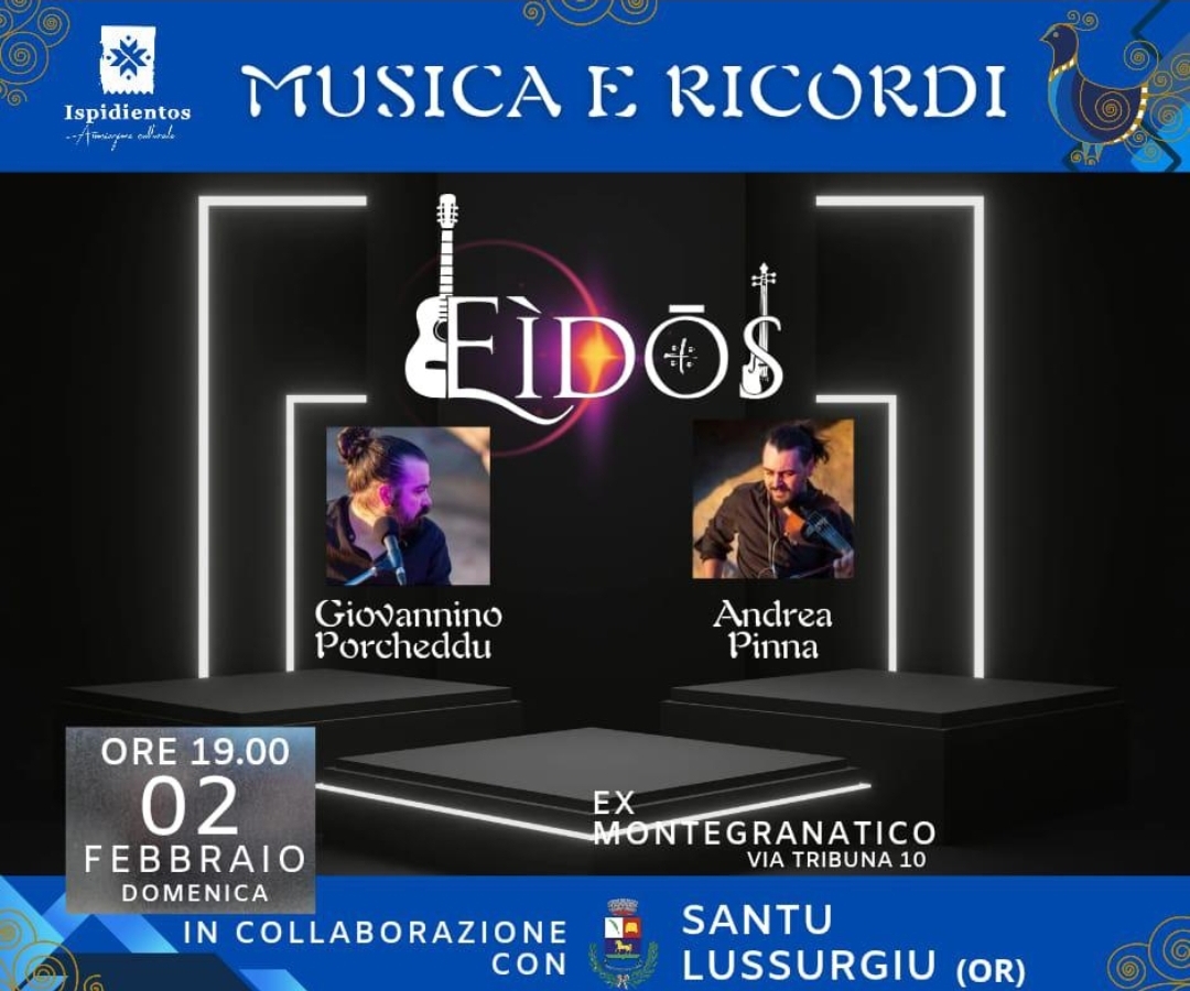 Una serata speciale all’insegna della musica e delle emozioni. Domenica 2 febbraio alle 19, presso l’Ex Montegranatico in Via Tribuna 10 a Santu Lussurgiu. L’evento, organizzato con il supporto dell’associazione culturale Ispidientos, vedrà protagonisti Giovannino Porcheddu e Andrea Pinna, membri del progetto Eidòs.