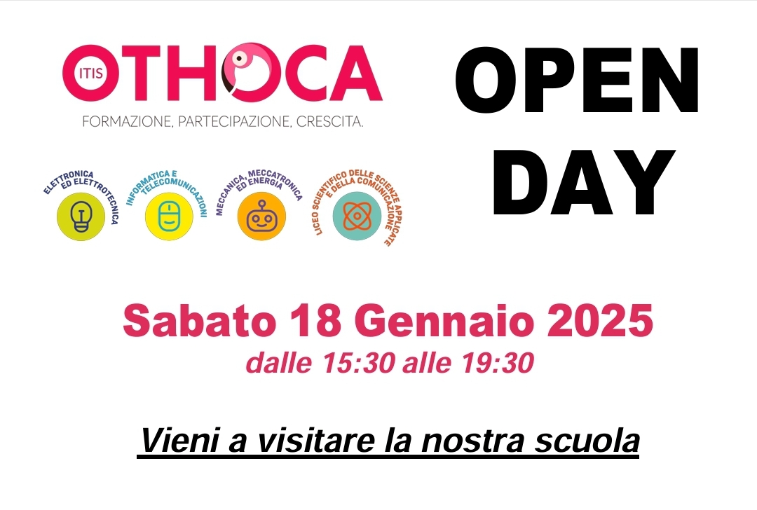 Sabato 18 gennaio 2025 si prospetta una giornata ricca di iniziative presso l’ITIS “Othoca”, con un doppio appuntamento che unisce la scoperta del mondo educativo e un’esperienza interattiva all’insegna del mistero. L’istituto aprirà le sue porte al pubblico per un Open Day che si terrà dalle 15:30 alle 19:30. Sarà occasione per studenti e famiglie di visitare aule, laboratori e tutte le strutture scolastiche, esplorando i diversi percorsi formativi offerti: elettronica, informatica, meccatronica e il liceo scientifico delle scienze applicate.