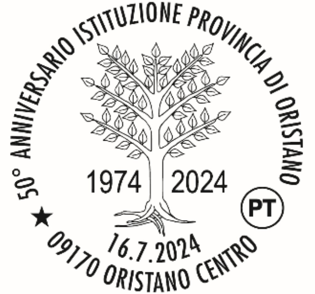 In occasione del 50° anniversario dell’istituzione della provincia di Oristano in programma il 16 luglio 2024, Poste Italiane attiverà un Servizio Filatelico Temporaneo con bollo speciale con la dicitura “50° anniversario istituzione provincia di Oristano 1974 – 2024” richiesto da Provincia Oristano.