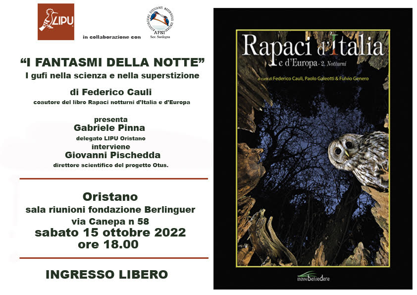 Sabato 15 ottobre, alle 18, nella sala della Fondazione Berlinguer in via Canepa 58 a Oristano, verrà presentato il libro di Federico Cauli sui rapaci notturni, il secondo libro sui rapaci d’Italia e