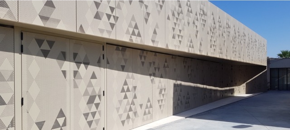 Pietra e metallo sono i materiali caratterizzanti. «Il disegno della facciata forata è la composizione di sei disegni che crea un pattern replicabile all’infinito», aggiunge l’architetto Walter Dejana.