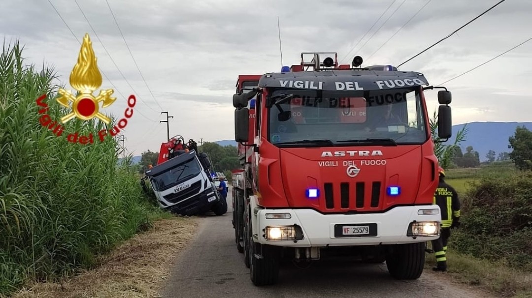 Per soccorrere il mezzo sono intervenuti i vigili del fuoco del comando provinciale di Oristano, con il supporto dell’autogru, nell’agro di Palmas Arborea.