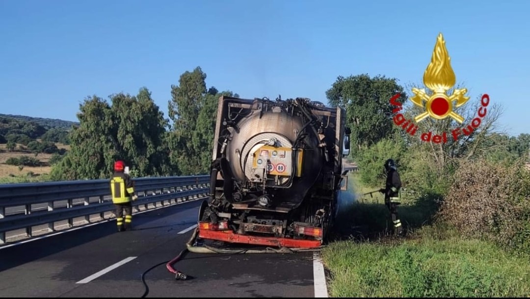 Paura sulla 131. Camion in fiamme all’altezza di Sedilo