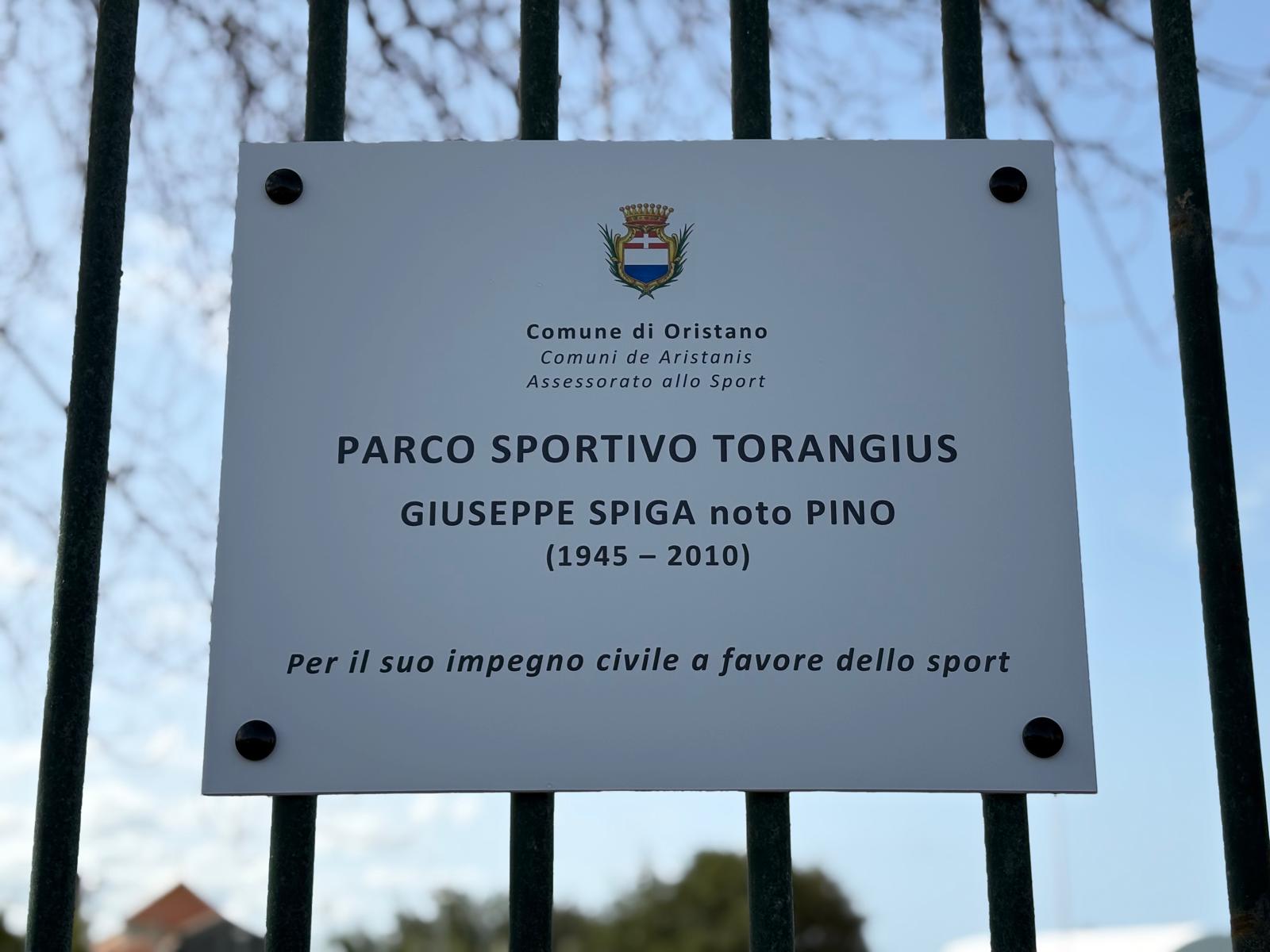 Questa mattina il parco sportivo di Torangius è stato intitolato a Pino Spiga, maestro di vita e di sport di tanti giovani, scomparso nel 2010, ma ancora vivo nella memoria di tanti oristanesi.