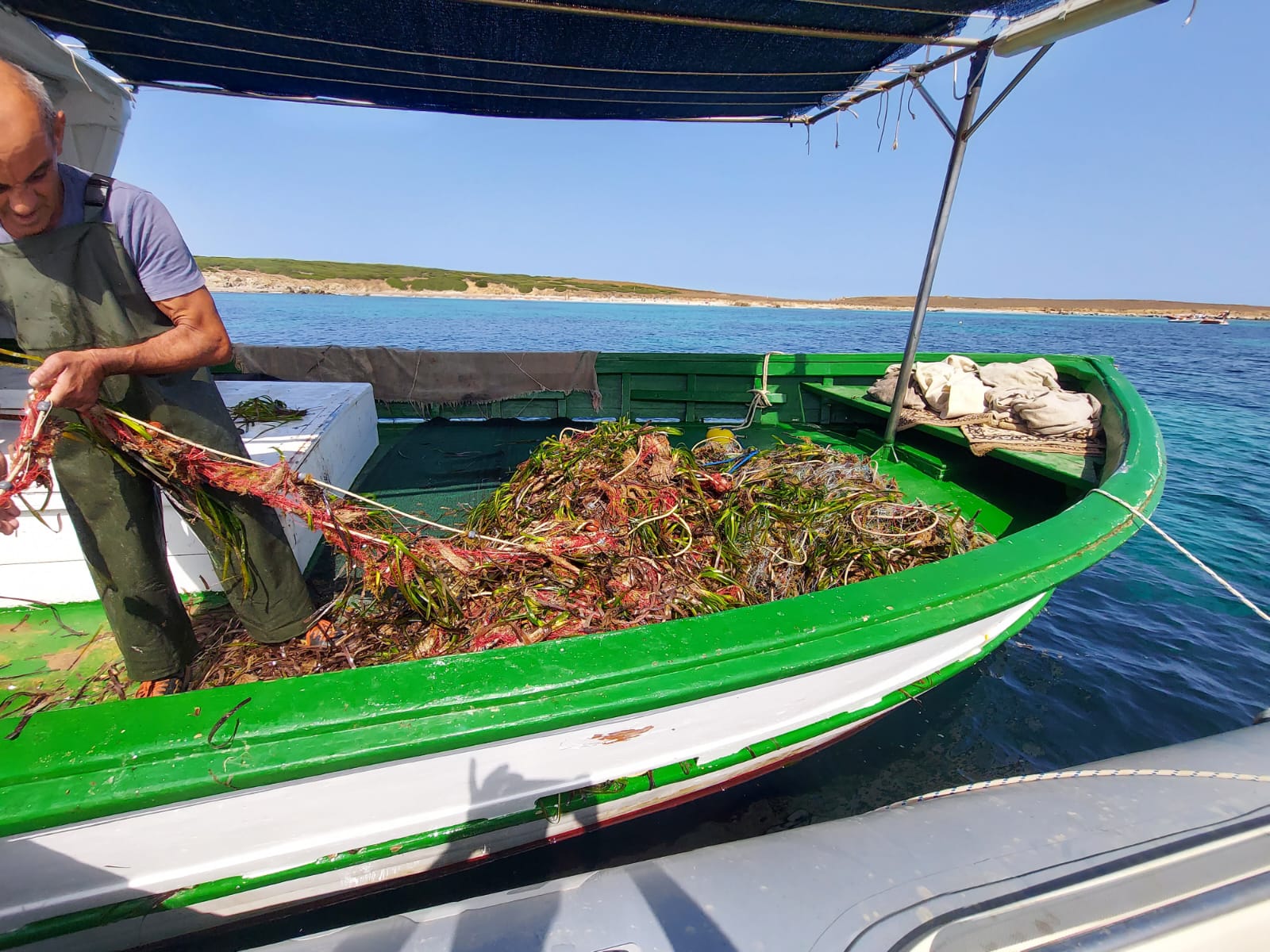 Si è svolta questa mattina nelle acque turchesi del mare del Sinis un’operazione di recupero di una rete da pesca da parte del personale dell’Area Marina Protetta nei pressi dell’Isola di Mal di Ventre, di fronte a Cala Saline.