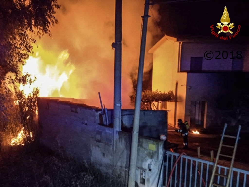 Giunti sul posto, gli uomini dei vigili hanno messo in sicurezza lo scenario e spento le fiamme. Nell’incendio, è stato coinvolto anche un mezzo agricolo.