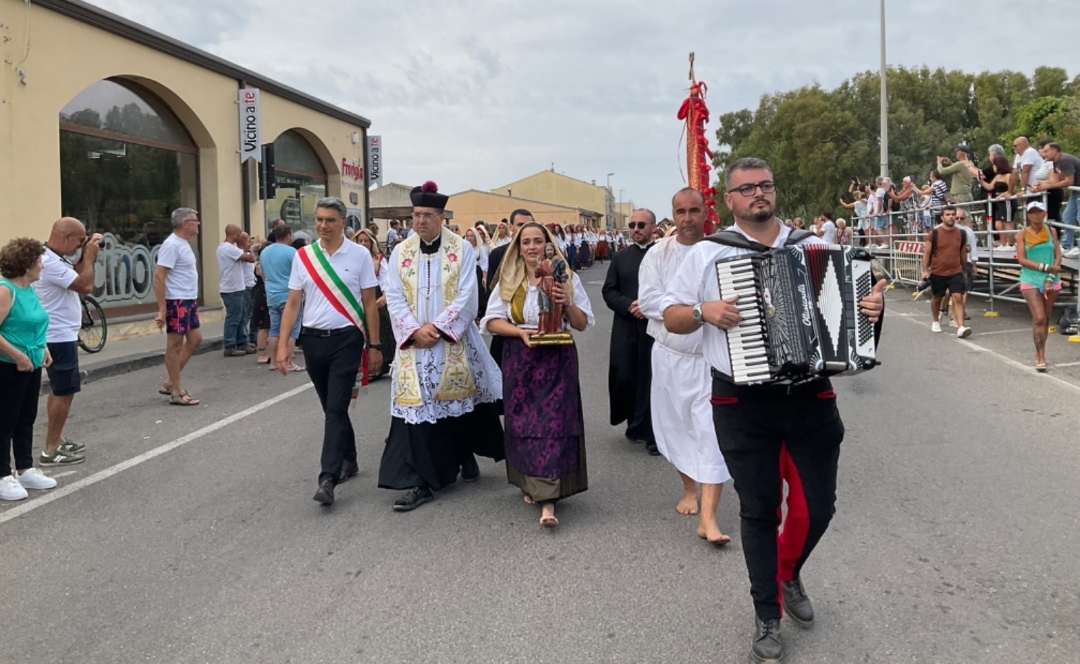 Le stesse strade, attraversate poco più di una settimana fa all’inizio dei festeggiamenti in onore di San Salvatore, hanno visto oggi le fedeli avanzare scalze, tra canti e preghiere, lungo gli sterrati de su caminu santu e poi sull’asfalto verso via Tharros e infine la chiesa di Santa Maria. Qui, la piccola e antica effige lignea di Santu Srabadoeddu riposerà fino al prossimo anno, quando riportata in processione darà nuovamente inizio ai festeggiamenti.La giornata è iniziata presto questa mattina. Le strade attorno al villaggio si sono animate con i colori degli abiti tradizionali, l’aria si è riempite delle preghiere dei fedeli attorno al piccolo santuario e le scalze, dopo aver partecipato alla messa, si sono dirette verso il paese.