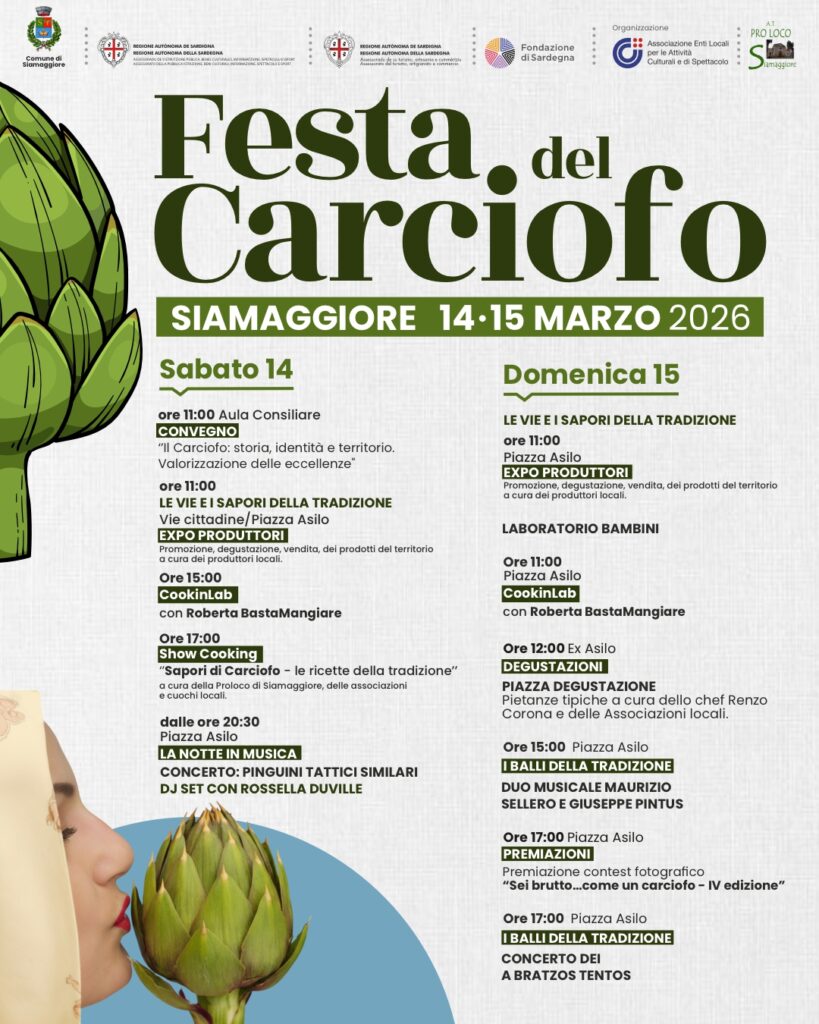 “La Festa del Carciofo è un appuntamento che coinvolge l’intera comunità – conclude il Sindaco Dessì – e che negli anni è cresciuto grazie al lavoro di produttori, associazioni e volontari. Ci aspettiamo una grande partecipazione di pubblico: invitiamo tutti a venire a Siamaggiore per scoprire i nostri prodotti, la nostra cucina e l’accoglienza del paese”.