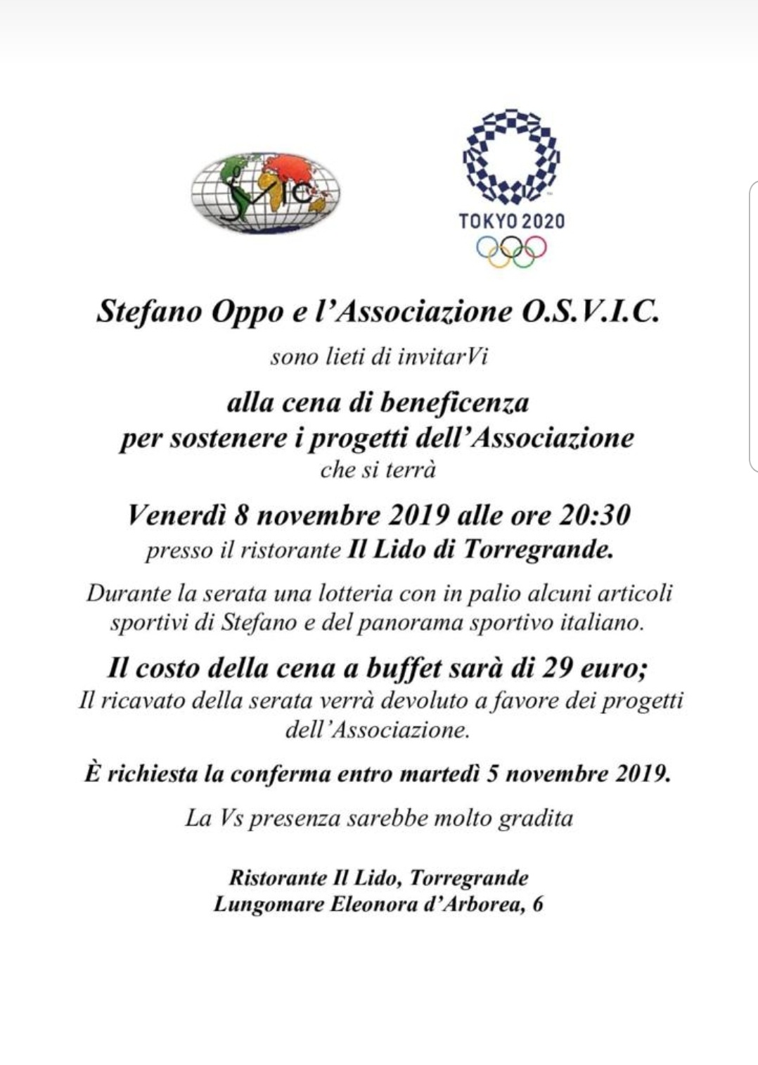 Stefano Oppo campione anche di solidarietà. Venerdì cena per l’Osvic