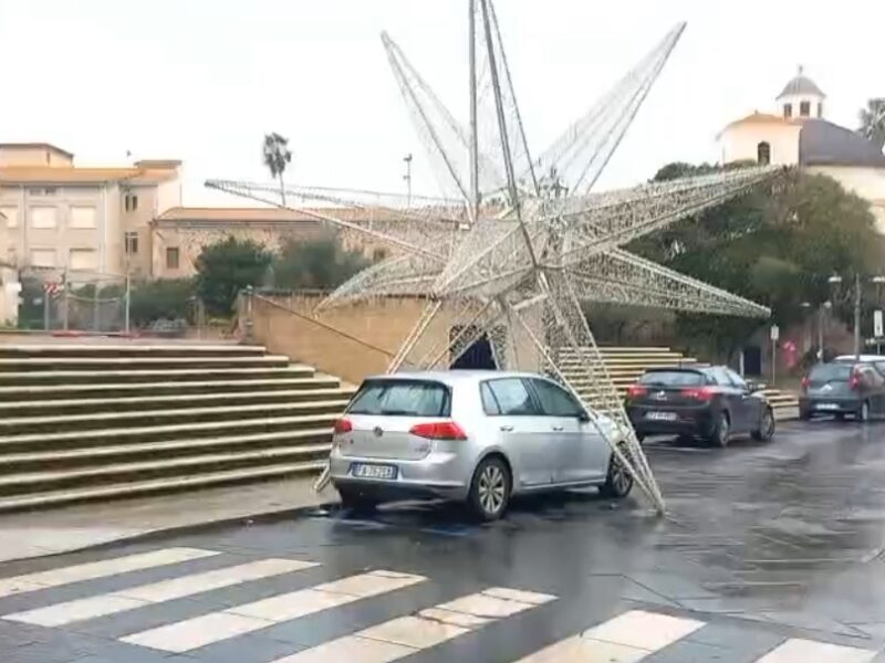 Oristano. Cede la stella di Natale in Cattedrale, lievi danni a un’auto